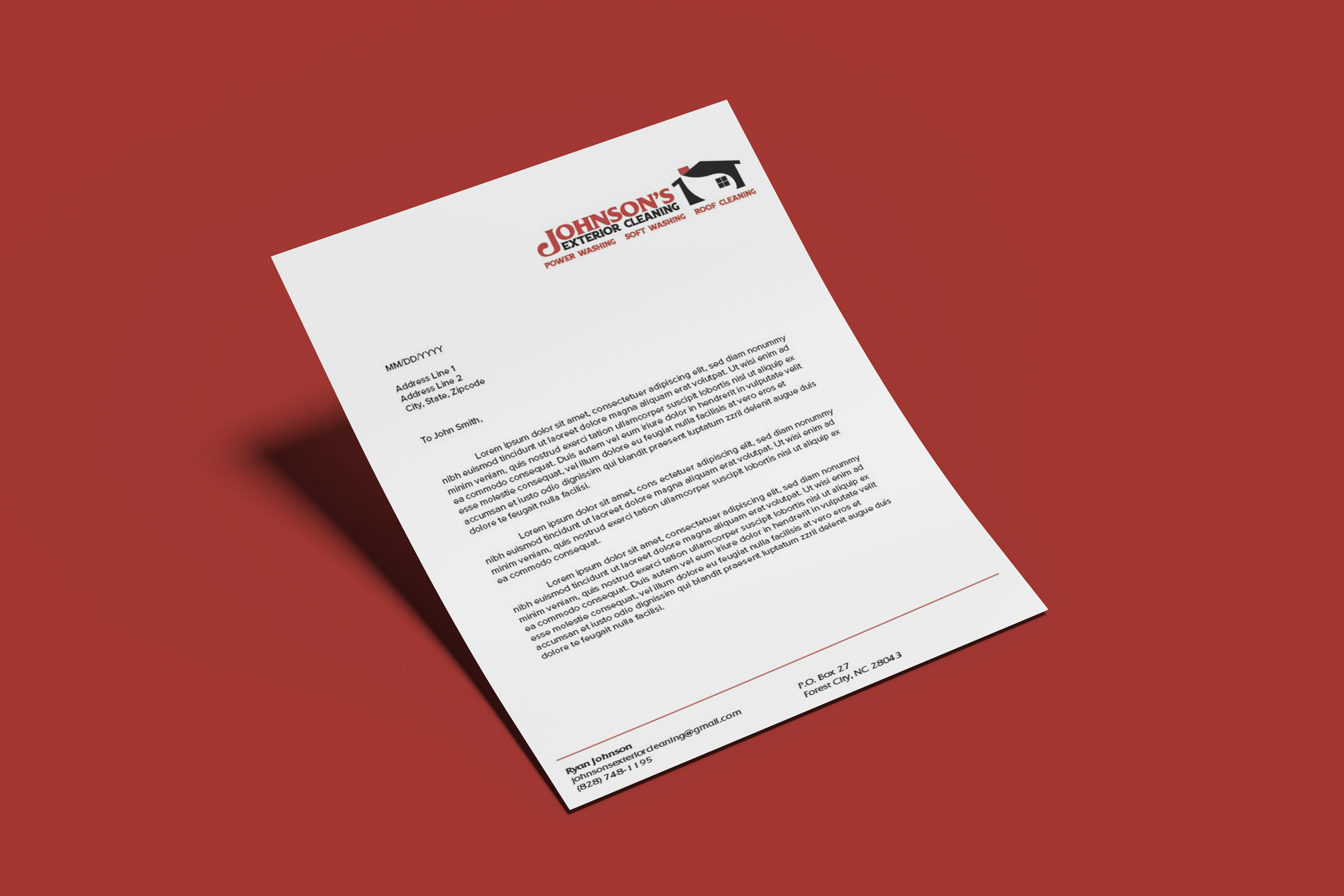Johnson's Exterior Cleaning began operations as a local service and needed a logo, business card, and letterhead designed to stand out. A red and black color theme and some elements relating to the company like a house and water were requested. I designed a clean logo and ensured that the designs were consistent.