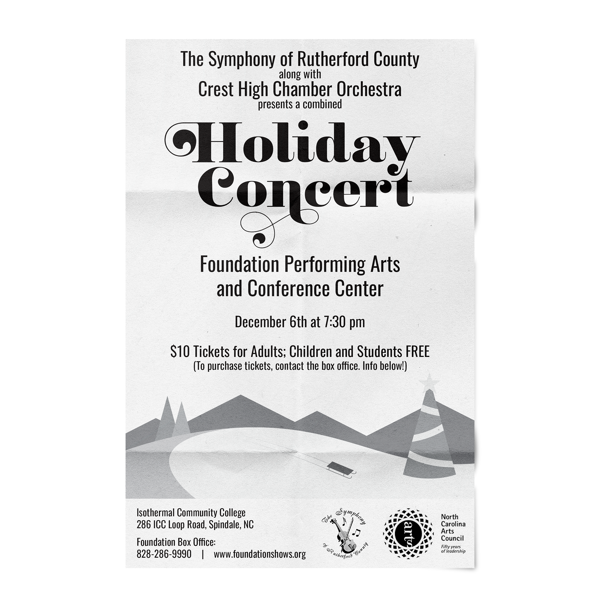 I took the initiative to create the poster for the Symphony of Rutherford County's 2019 Holiday Concert as well as the booklet that was provided to the audience before the show. The president of the symphony and the conductor provided the information for the show and helped in the revision process. This is a volunteer symphony, and I had the honor of being a part of it!