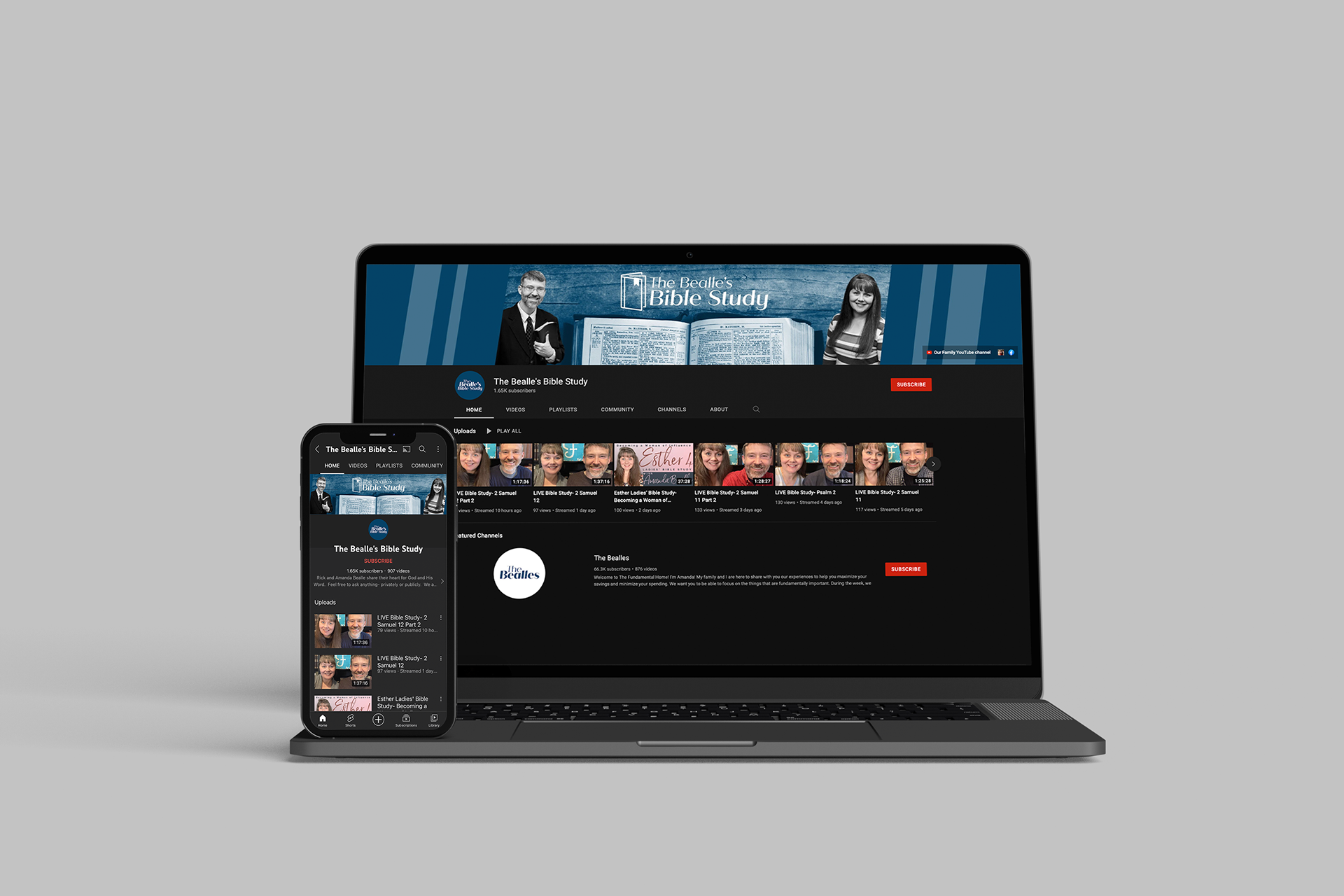 Since it is a second channel, I was also asked to create a YouTube Banner for it as well. I felt it was fitting to include a photo of the Bible in the banner along with the logo and a photo of the Bealles to show what this channel is about at first glance.